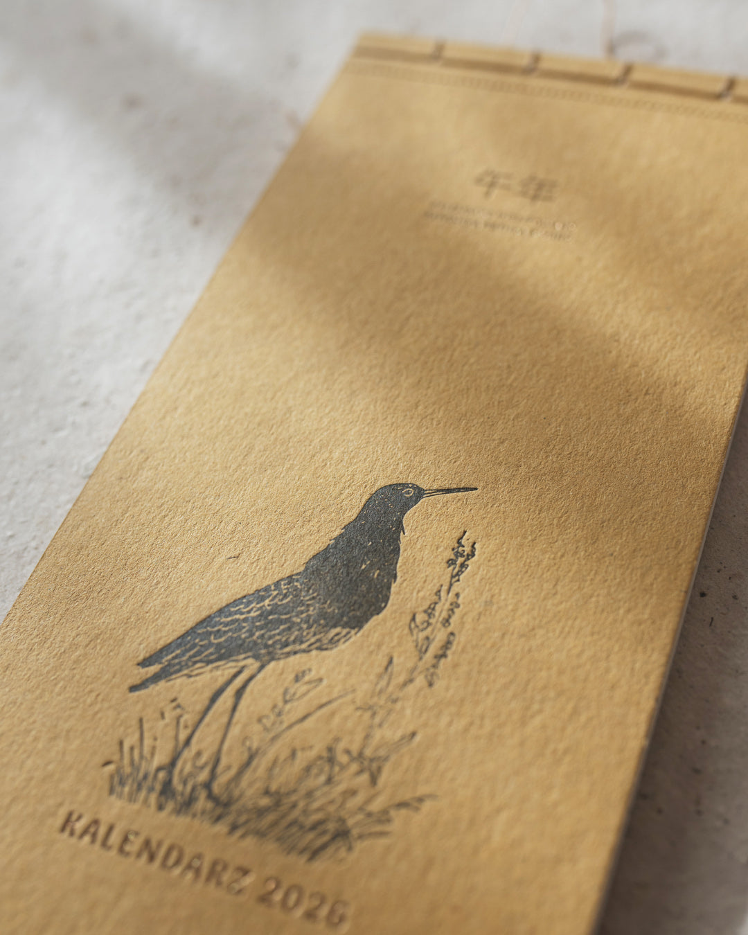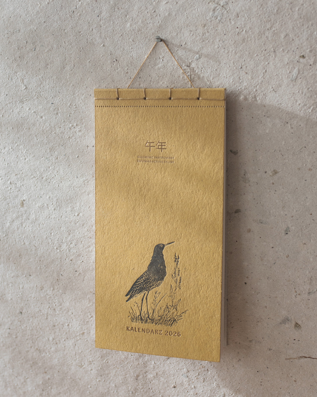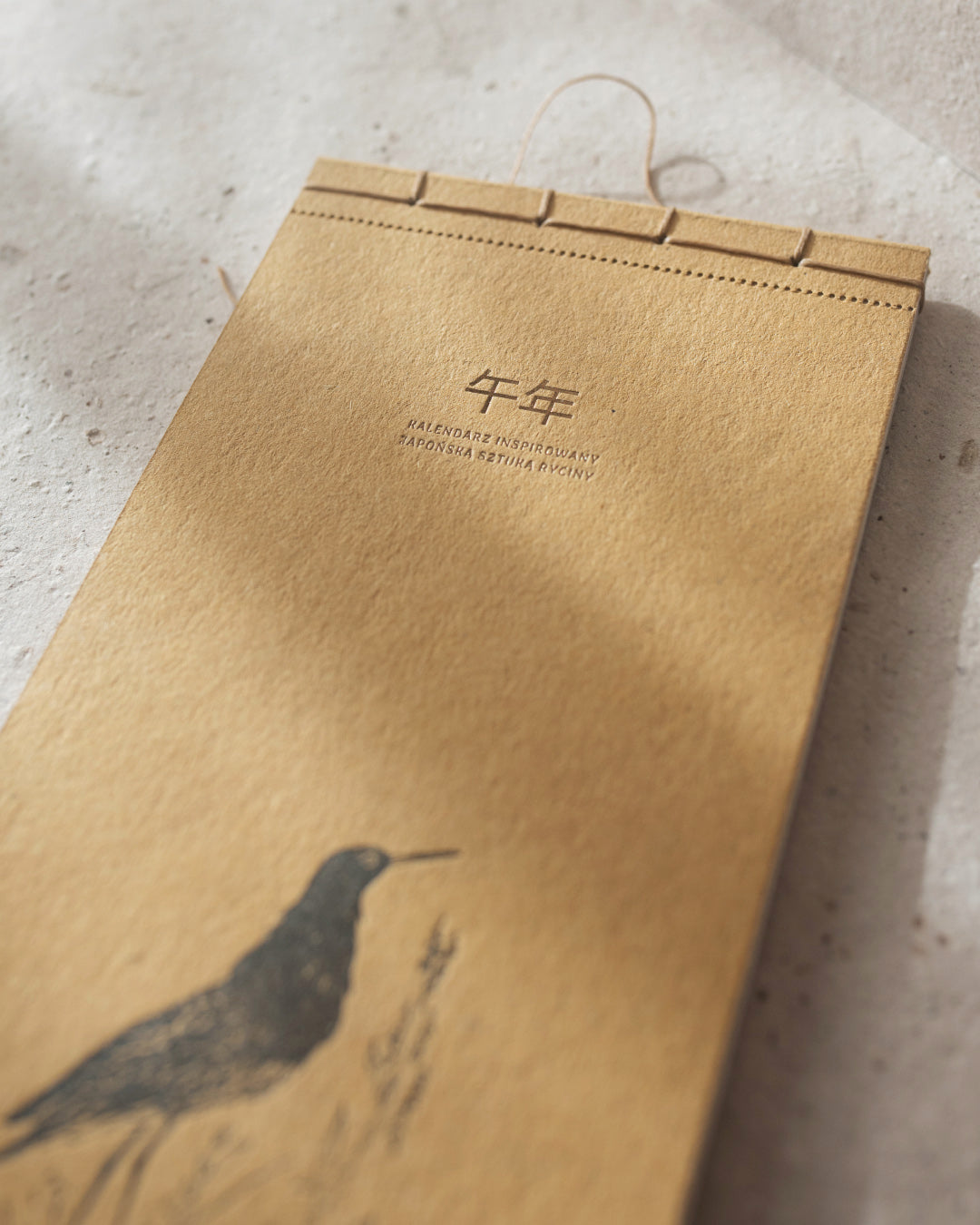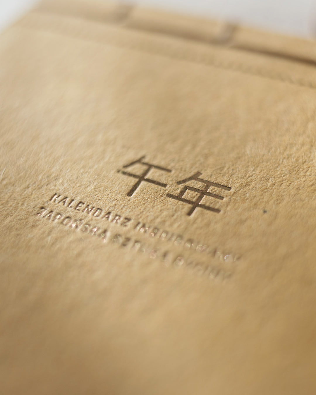 Okładka została wykonana w technice druku typograficznego, z delikatnym złoceniem. Całość przewiązana jest sznurkiem, umożliwiającym zawieszenie kalendarza — wiązanym ręcznie, z dbałością o każdy detal.