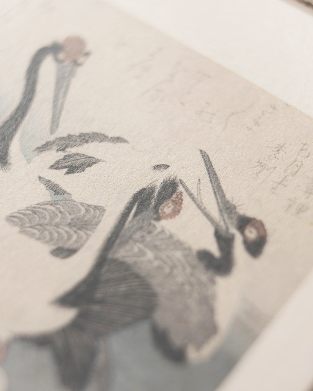 Mały, ręcznie wykonany kalendarz ścienny zawierający dwanaście dawnych japońskich ilustracji autorstwa Kuboty Shunmana, Okuhary Seiko oraz Ohary Kosona.